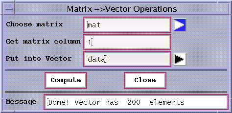 We can plot the matrix 'mat' using the 'Matrix' function of the Plot pull-down menu on the main window. First, we select the name of the matrix 'mat' from the list (Fig.19), using the arrow to the right of 'Select Matrix box in Fig 20.