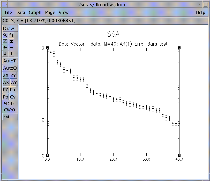 As an excercise to the reader, the components with EOFS 8-9 can be reconstructed, and then passed to the MEM tool to check the frequency. Combining the results of MTM and SSA analysis, we conclude that our data contains an oscillatory signal at f=0.18.