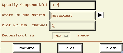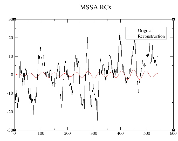 We can reconstruct the original multi-channel data or PCA components from selected MSSA modes using the Reconstruction pull-down menu in the MSSA window.