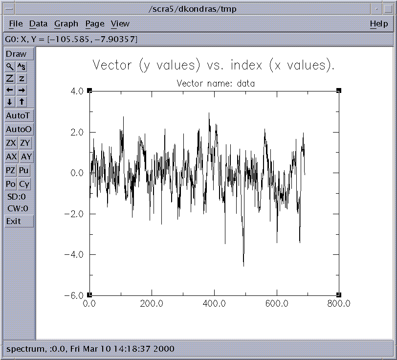 Data should be in the form of ascii columns, and can be either a column vector of a single time series, or a matrix of several columns, one for each time series. The 'Read Vector' or 'Read Matrix' functions from the File/Data menu are used to read the data. However, if a multi-column file (matrix ) is read using 'Read Vector', only the second column is read into a vector, while the first column, assumed to be time values, is ignored.