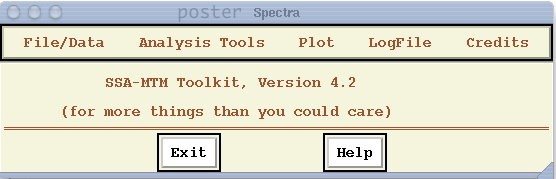 The `Exit' button quits all tools, and any results are lost unless they have been explicitly saved. Any open plot windows remain, however. The toolkit creates a number of local files while running. These files will be ALL DELETED !!! after exiting the program.